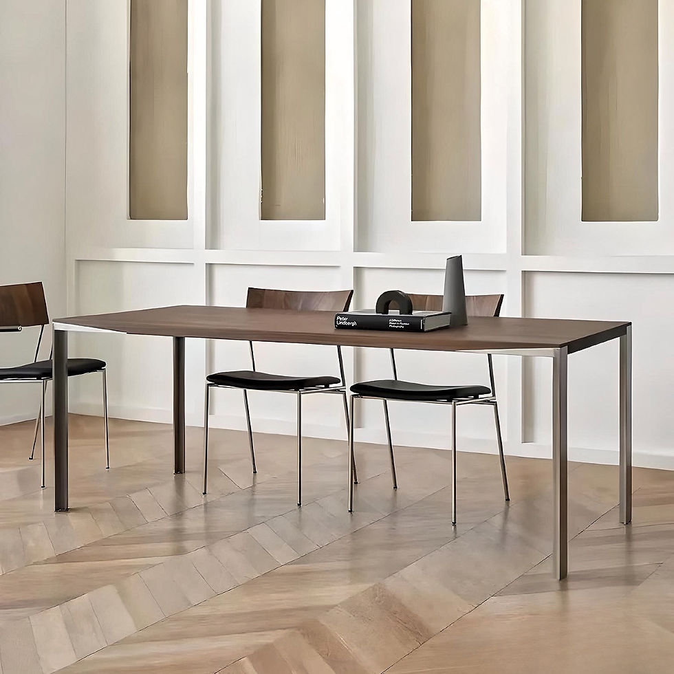 The most simple stainless steel frame and wood top dining table.